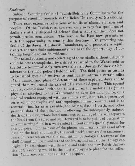 August Hirt, ambitious and lazy, whose scheme to study the skulls of "Jewish Bolshevik commissars" was sent to the highest levels of the Third Reich: Rudolf Brandt, Dr. Wolfram Sievers, Adolf Eichmann,
