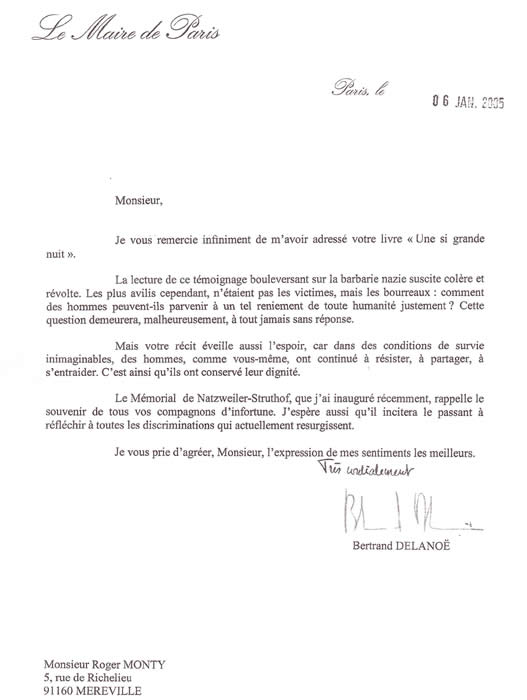 “Puis ça a été le départ pour Natzweiler-Struthof. Nous étions une cinquantaine dans un wagon cellulaire parti de la gare de l’Est et accroché au Paris-Berlin. Personne ne s’attendait à ce qui allait nous tomber sur la tête. Nous dépendions tous du décret de Hitler et Keitel, NN, Nacht und Nebel (1) : nous devions disparaître. A Natzweiler, nous sommes descendus de la voiture cellulaire en plein hiver, entourés de SS et de leurs chiens-loups. Arrivés dans ce camp garni d’oriflammes avec sigles SS et croix gammées. La neige, le gel, le froid, les kapos, tous des droits communs…” Roger, matricule 6992 du Konzentrationslager Natzweiler, n’a que 19 ans et demi. “J’ai rapidement réfléchi : il faut s’organiser, sinon on va tous mourir. Est-ce que j’en pensais un traître mot ? Non, sans doute, mais il fallait s’organiser, être solidaires. Là, tu es l’homme abandonné, sans rien ni personne pour t’aider. Nous étions sous la tutelle des SS. Mon seul atout : je parlais allemand.” Avant d’être transféré au camp de Gross-Rosen, Roger Monty et ses compagnons iront creuser dans le tunnel de Kochem, en Rhénanie-Palatinat. Dans ce kommando (1), beaucoup moururent de faiblesse, des coups, de blessures non soignées, de maladies… Dans son livre, Une si grande nuit (2), il raconte l’élan de solidarité qui accueillit à Gross-Rosen l’arrivée des rescapés de Kochem.