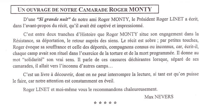 (2) A commander auprès de l’auteur : Roger Monty, 5, rue de Richelieu, 91660 Méréville. (18 e, frais de port inclus).